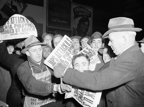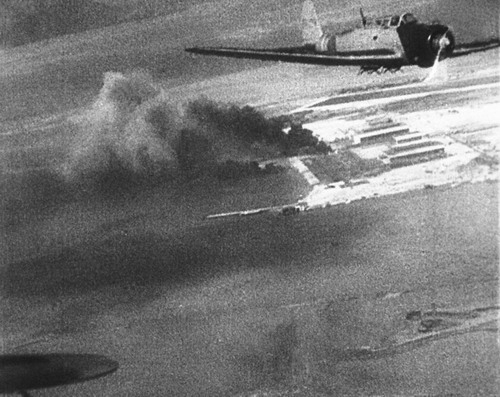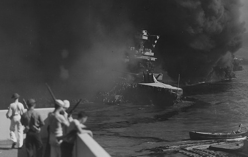 7 декабря 1941 года Имперский японский ВМФ без предупреждения атаковал США, обстреляв военные корабля и объекты в Перл-Харбор на Гавайях. Более 350 японских самолетов атаковали военную базу двумя волнами, обстреливая цели, сбрасывая бомбы и торпедируя боевые корабли и лайнеры США. Американцев застали врасплох – они проснулись под звуки взрывов и безуспешно пытались организовать хоть какую-то оборону. Обезоруживающий удар японцев длился всего полтора часа: за это время были потоплены четыре корабля и два эсминца, уничтожены 188 самолетов и повреждено большое количество зданий и военной техники (два боевых корабля затем подняли и вернули в эксплуатацию). Кроме того, во время налета погибло около 2400 американцев; еще 1250 были ранены. Население США было шокировано. После атаки Япония официально объявила войну США. За этим последовало знаменитое военное послание нации президента Рузвельта, и было подписано официальное объявление войны против Японии. В течение нескольких дней нацистская Германия и королевство Италии также объявили войну США, и вскоре после этого Америка “ответила им взаимностью”.